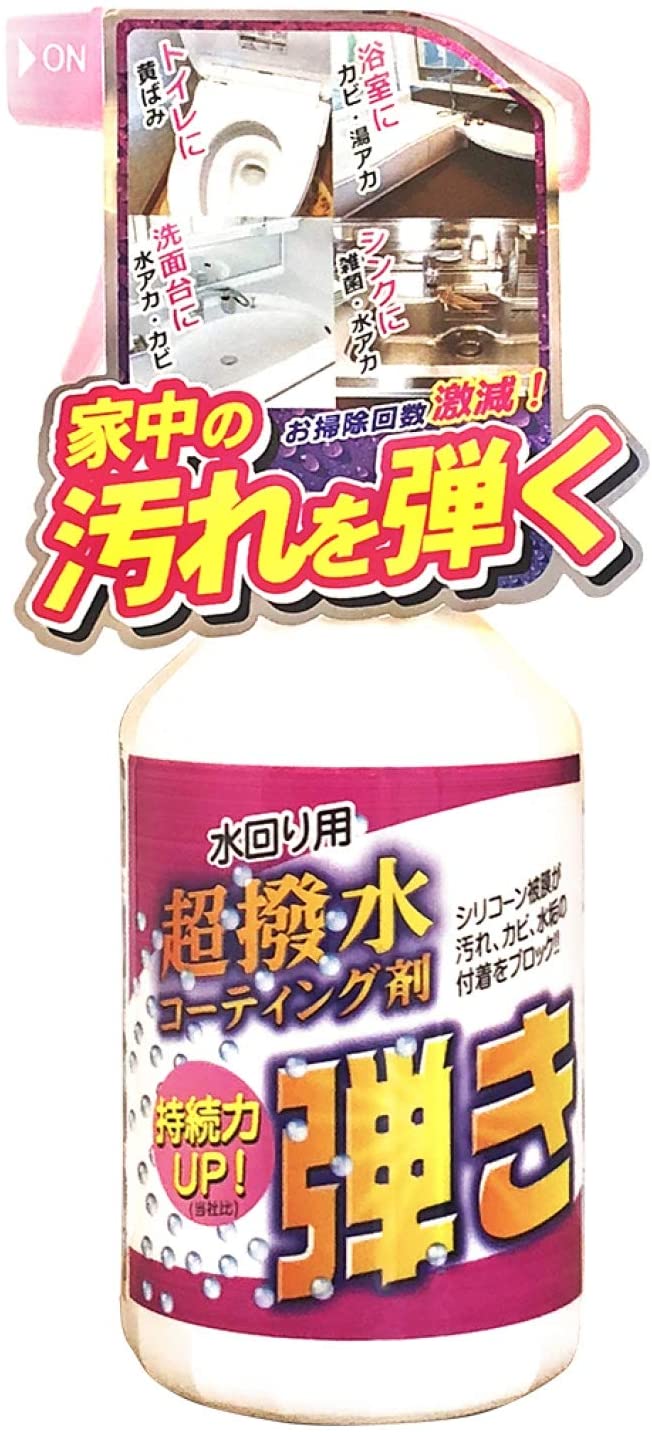 超発水コーティング!汚れや水アカを強力に弾きます。効果長持ち!防カビ剤配合でパワーアップ!従来品の臭いを軽減し更に使いやすく、新しくなった超発水剤弾き!!